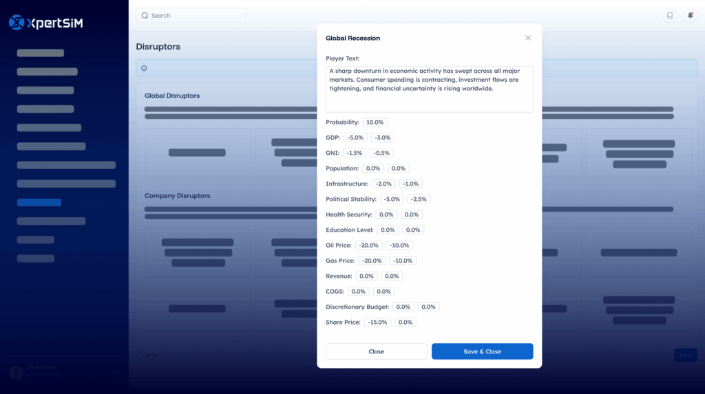 Powered by controlled randomness, XpertSiM replicates the uncertainty of real-world disruptions, forcing teams to navigate volatility, risk, and cascading financial consequences.